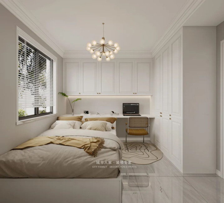 温柔治愈的奶油色调,营造舒适自由的栖息之所,没有过多抢眼的色彩,深色系的地板、胡桃色的复古大床和奶白色的家具,舒适治愈,沉沦与温暖心动的氛围感。