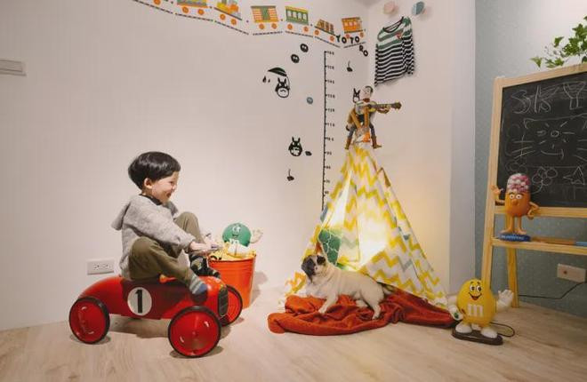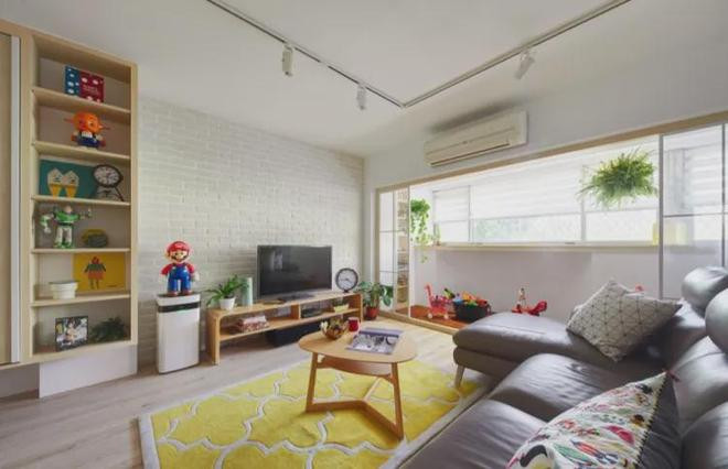 住在底层唯一不足的就是阳台不能做落地窗,但是更亲近于大自然,电视墙贴上白色文化砖,一盘的柜子都收纳了卡通动画片的模型,给人带来一种很活泼,欢乐 的感觉。