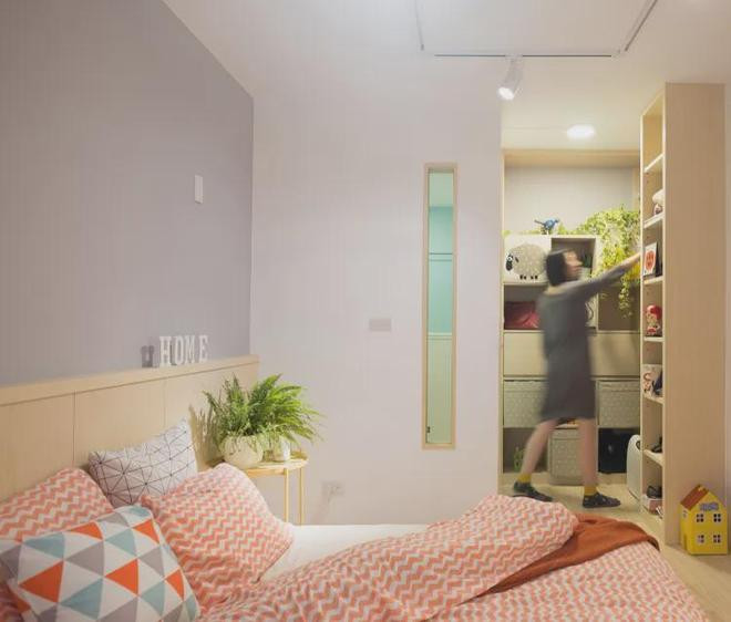 两间卧室做的都是木色推拉移门,调皮的孩子喜欢玩耍,跑来跑去的,就更不会被夹手。